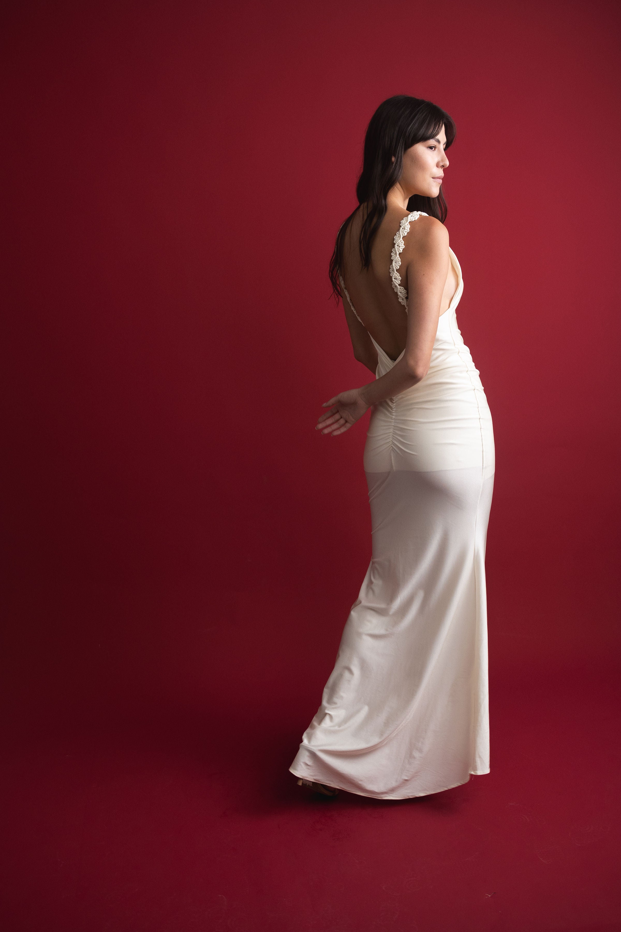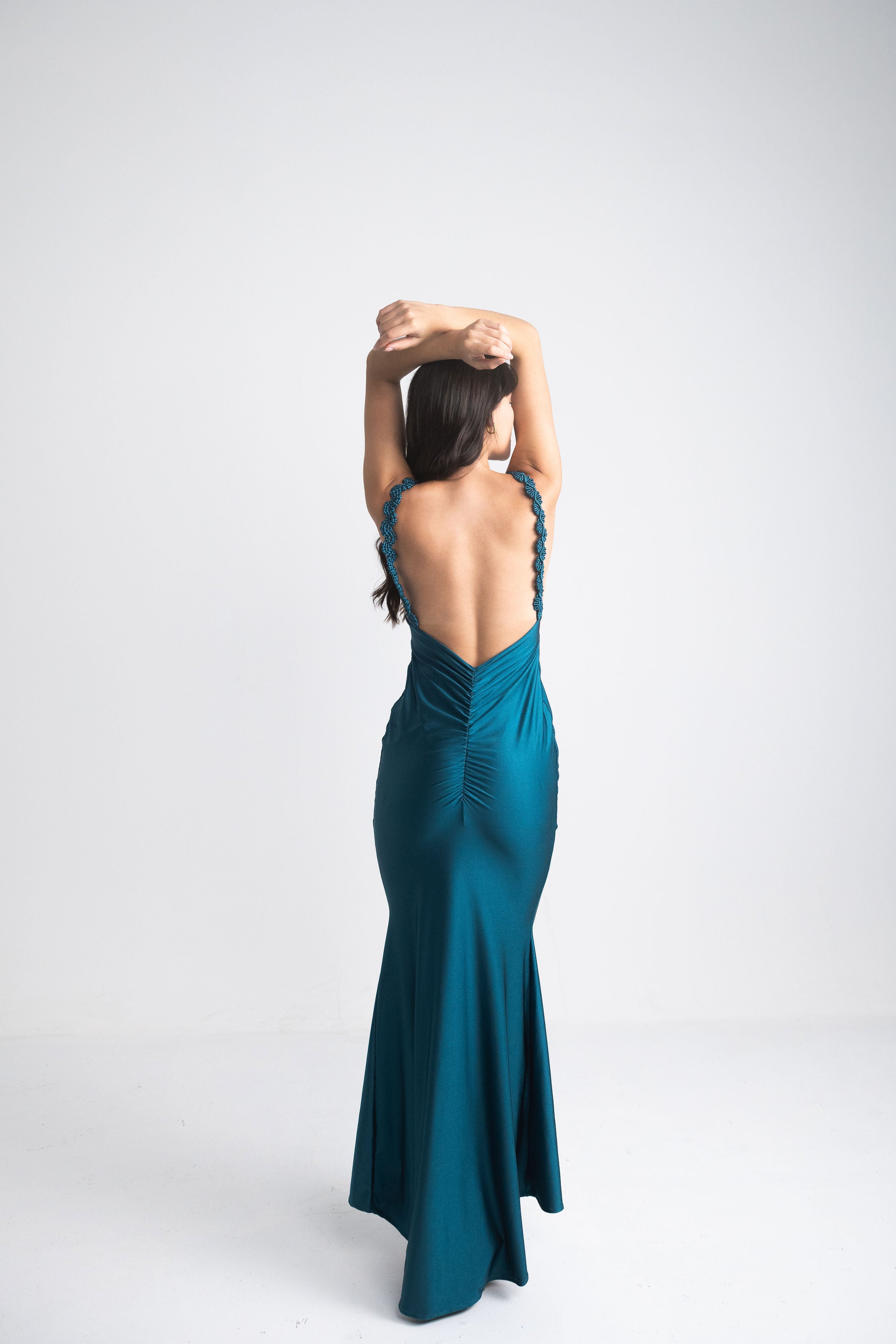 Un diseño que combina sensualidad y elegancia en equilibrio, con el toque artesanal del macramé que lo hace único.