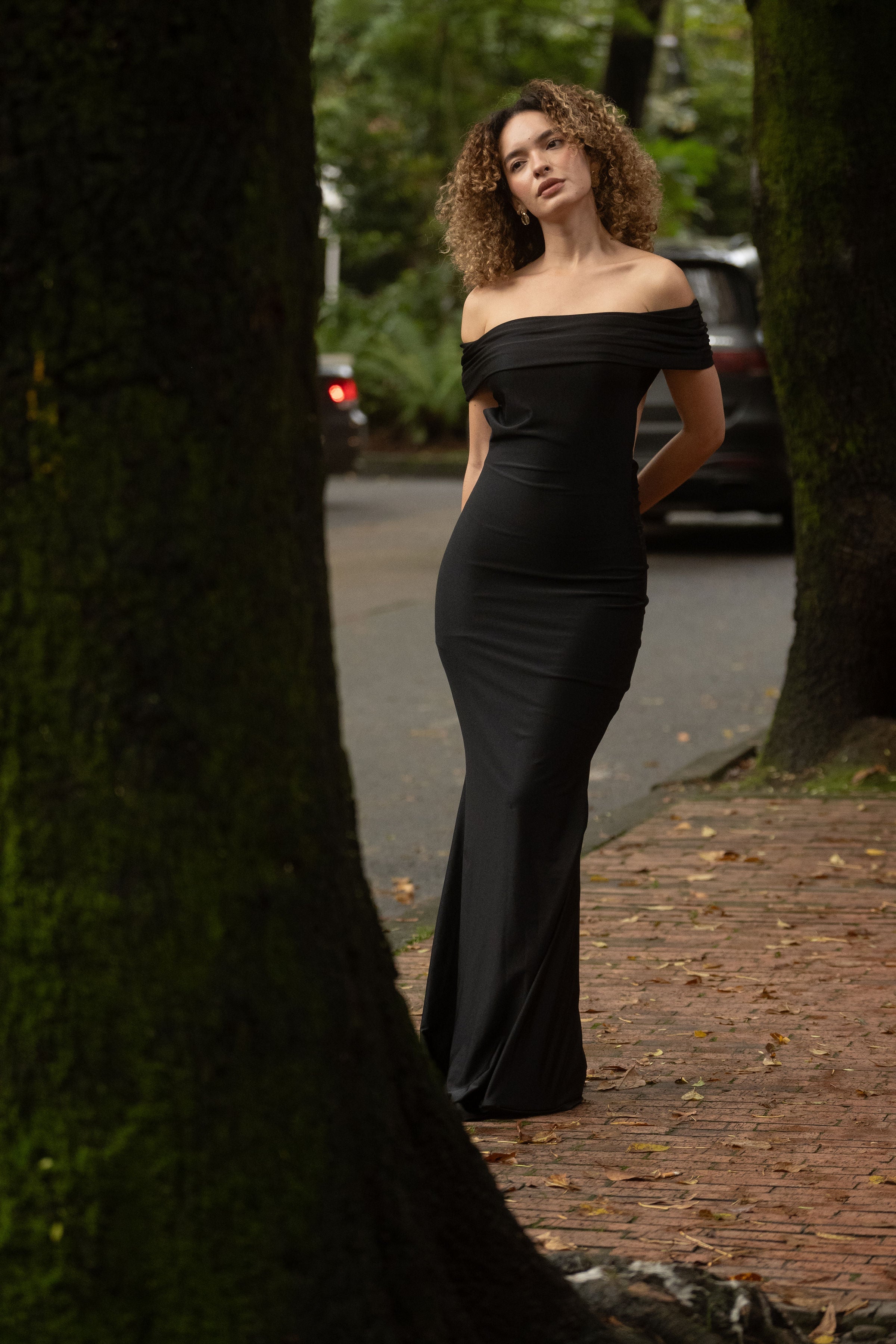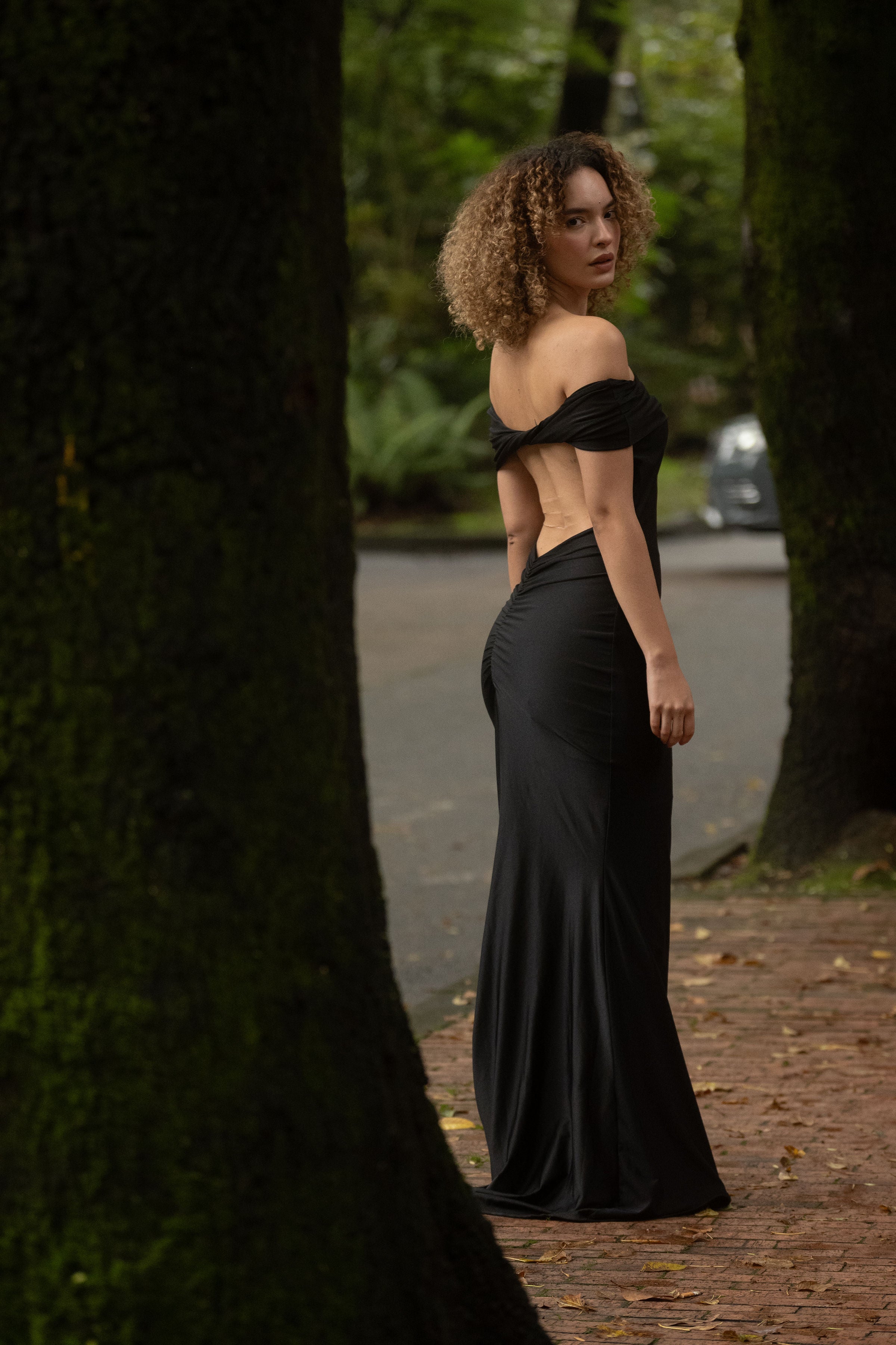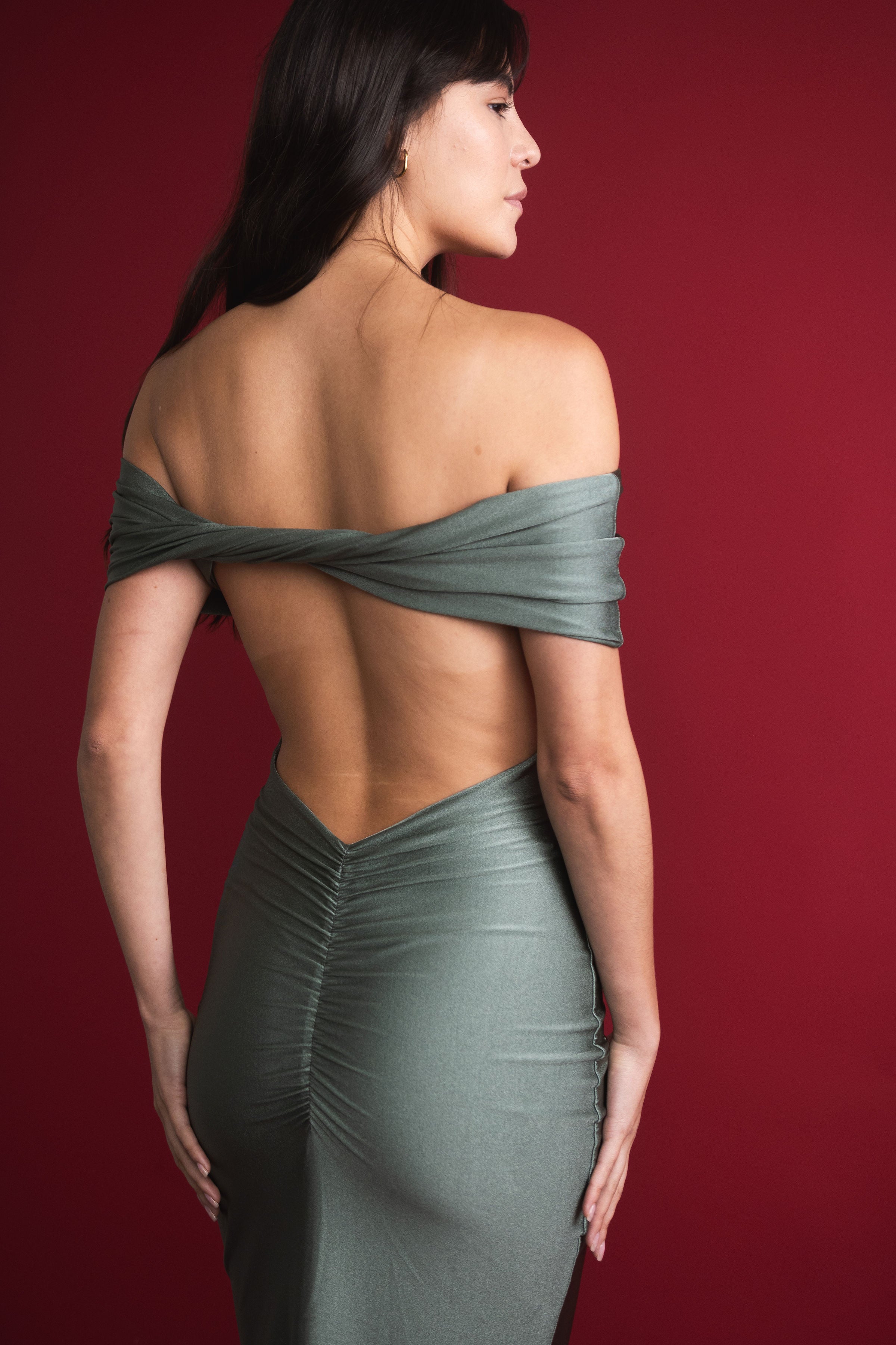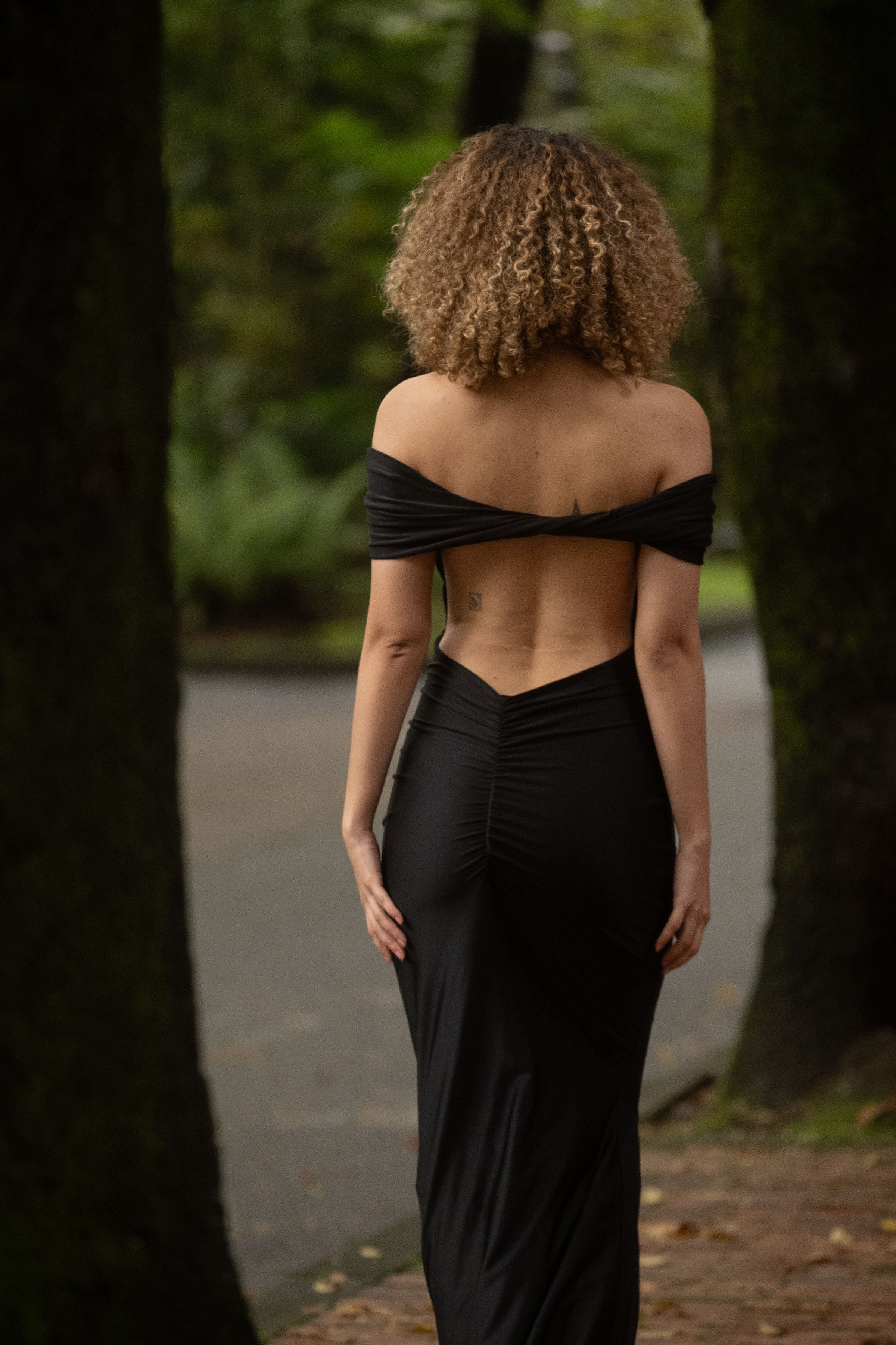 • Escote en V en la parte baja de la espalda, elegante y sexy.